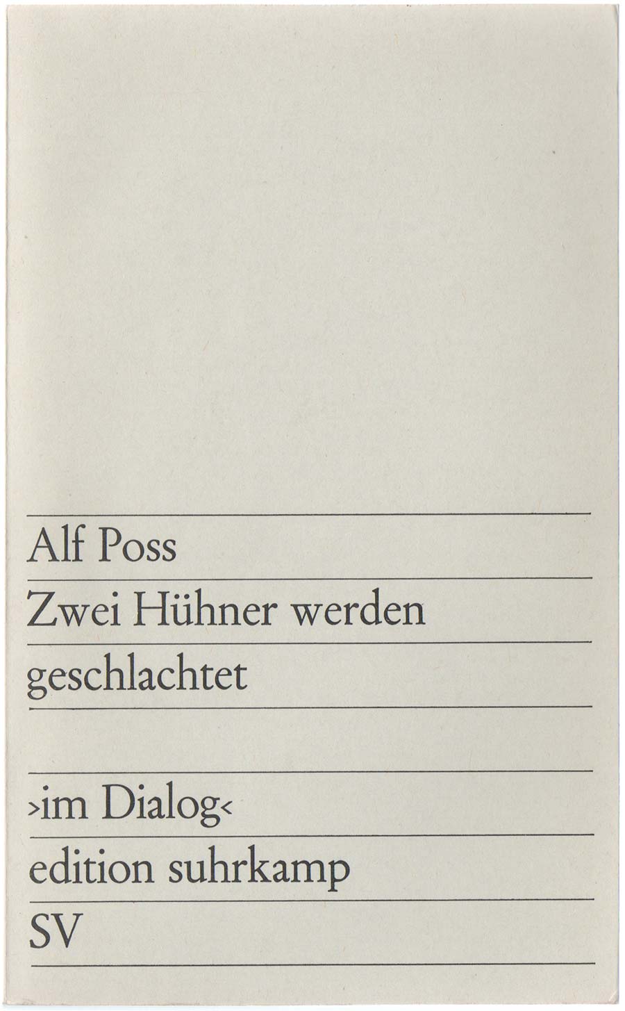 Alf Poss, 1936 in Ulm geboren, lebt heute in München. Er studierte Philosophie an der New York University, dann Publizistik an der Hochschule für Gestaltung in Ulm. 1964 war er als Teilnehmer an dem von Walter Höllerer geleiteten Literarischen Colloquium in Berlin. Sein erstes Theaterstück Zwei Hühner werden geschlachtet erschien 1969 in der edition suhrkamp.