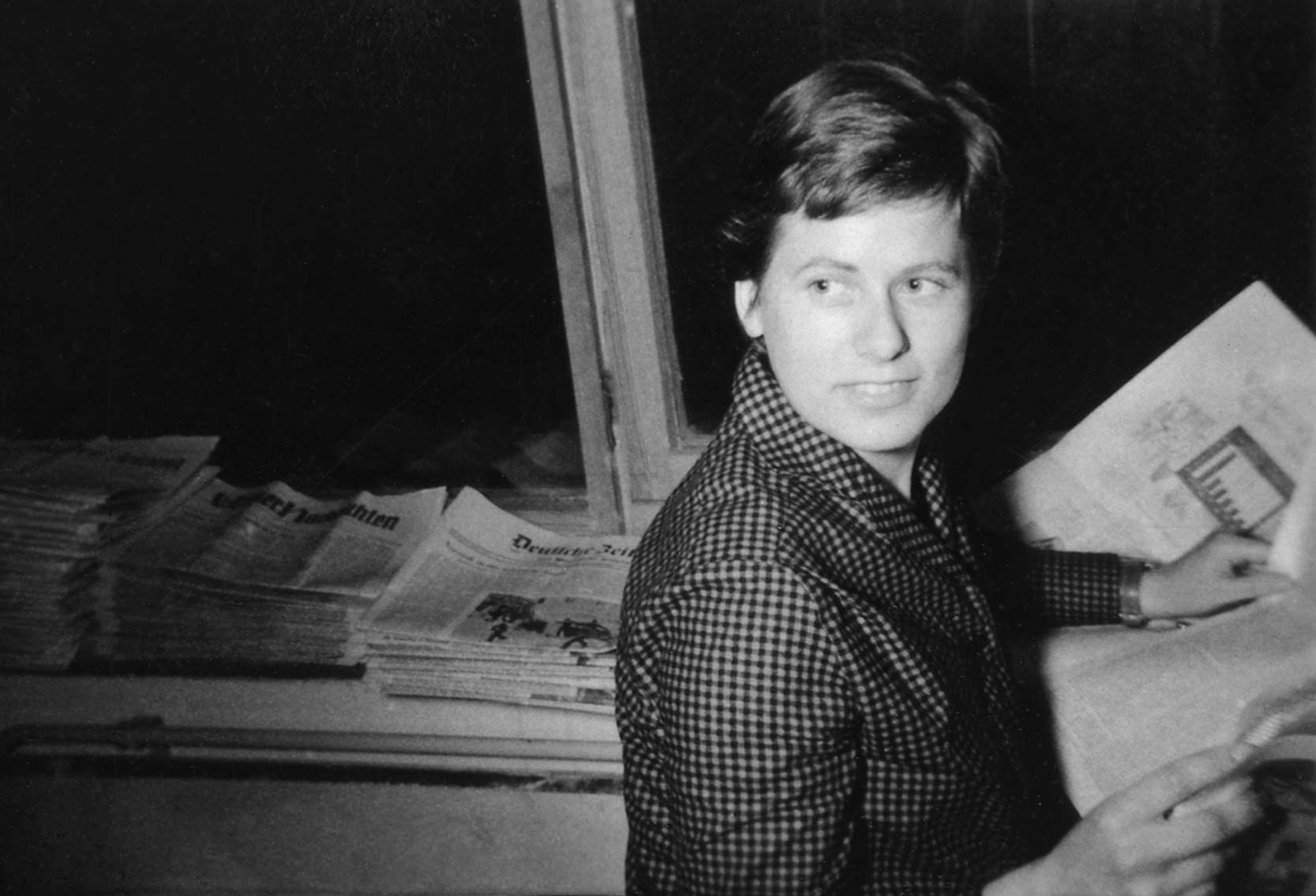 Im Einzelnen kann ich mich nicht mehr erinnern. Auch nicht daran, was zitternd vor Aufregung in einem persönlichen Vorstellungsgespräch mit der übermächtig erscheinenden Kultfigur von Max Bill erörtert wurde. Das für die Aufnahme in die Abteilung Information erforderliche Abitur brachte ich mit. Als praktische Voraussetzung konnte ich ein bescheidenes Volontariat bei der Schwäbische Donau-Zeitung vorweisen mit dem Bonus, dass dessen durch seine jüdische Herkunft legitimierte Verleger Kurt Fried ein Befürworter der hfg in skeptischen Ulmer Kulturkreisen war, zudem Sammler von Nachkriegskunst mit Schwerpunkt konkret geometrisch. Das kam gut an. Dass ich dem Anforderungsprofil entsprach, wundert mich immer noch. Vermutlich hat es mir geholfen, dass ich eine Frau war. Gleichberechtigung gehörte zur Idee „Ulm“ bevor das Rad der Gendergerechtigkeit zu drehen begann. Und ich darf hinzufügen, dass mir eine solche von da an in meiner späteren beruflichen Arbeit ohne feministischen Uebereifer selbstverständlich geblieben ist. Fairerweise muss man hinzufügen, dass es Frauen in den kulturvermittelnden Sparten immer schon leichter hatten als in anderen Wissensbereichen.